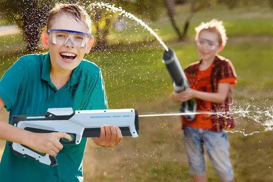 Le pistolet à eau électrique qui domine l’été. Jet puissant, tir instantané… et des LED au bout du canon qui s’activent à chaque tir pour un effet ultra réaliste.